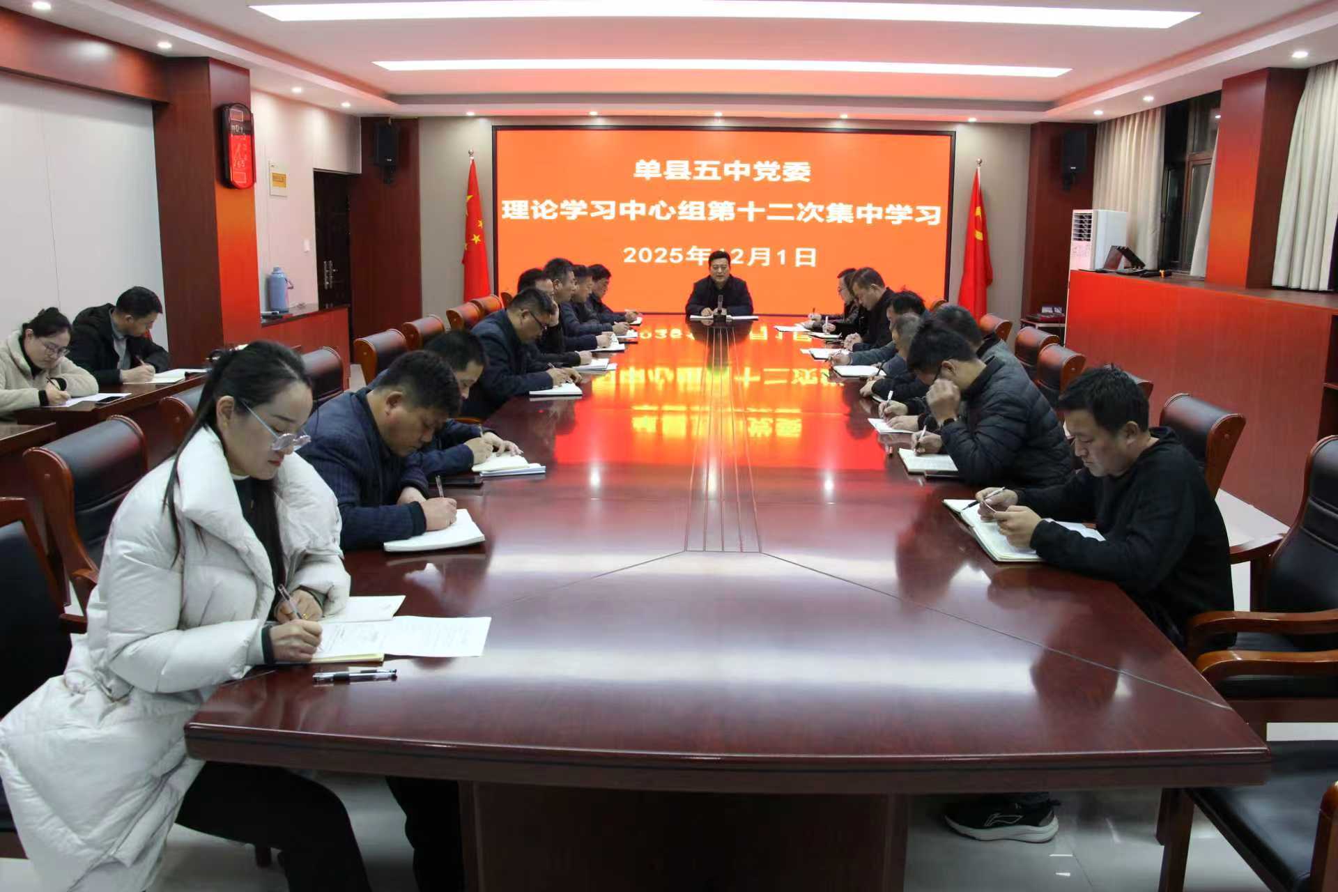 12月1日下午,单县五中党委理论学习中心组在学校综合楼三楼第三会议室举行本年度第十二次集体学习会。会议专题学习了《习近平对全面依法治国工作作出重要指示》以及《习近平在中共中央政治局第二十三次集体学习时强调 健全网络生态治理长效机制 持续营造风清气正的网络空间》两项重要内容。会议由学校党委书记、校长苗玉法同志主持,全体党委理论学习中心组成员参加学习。