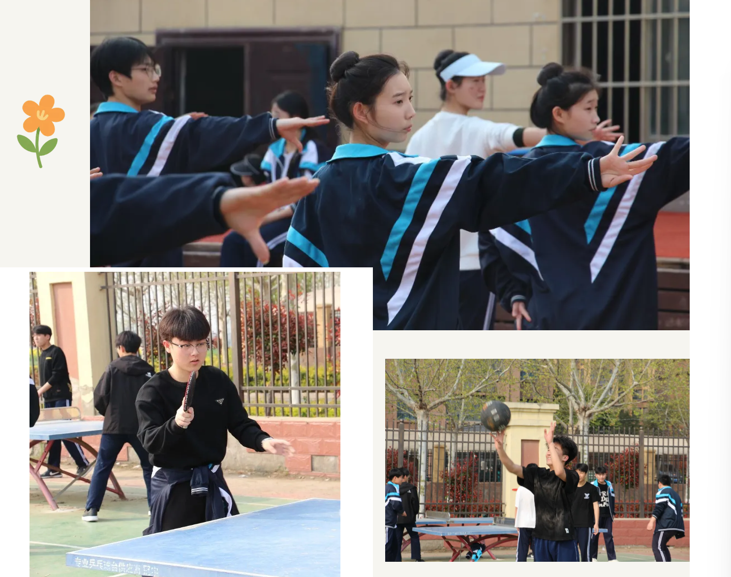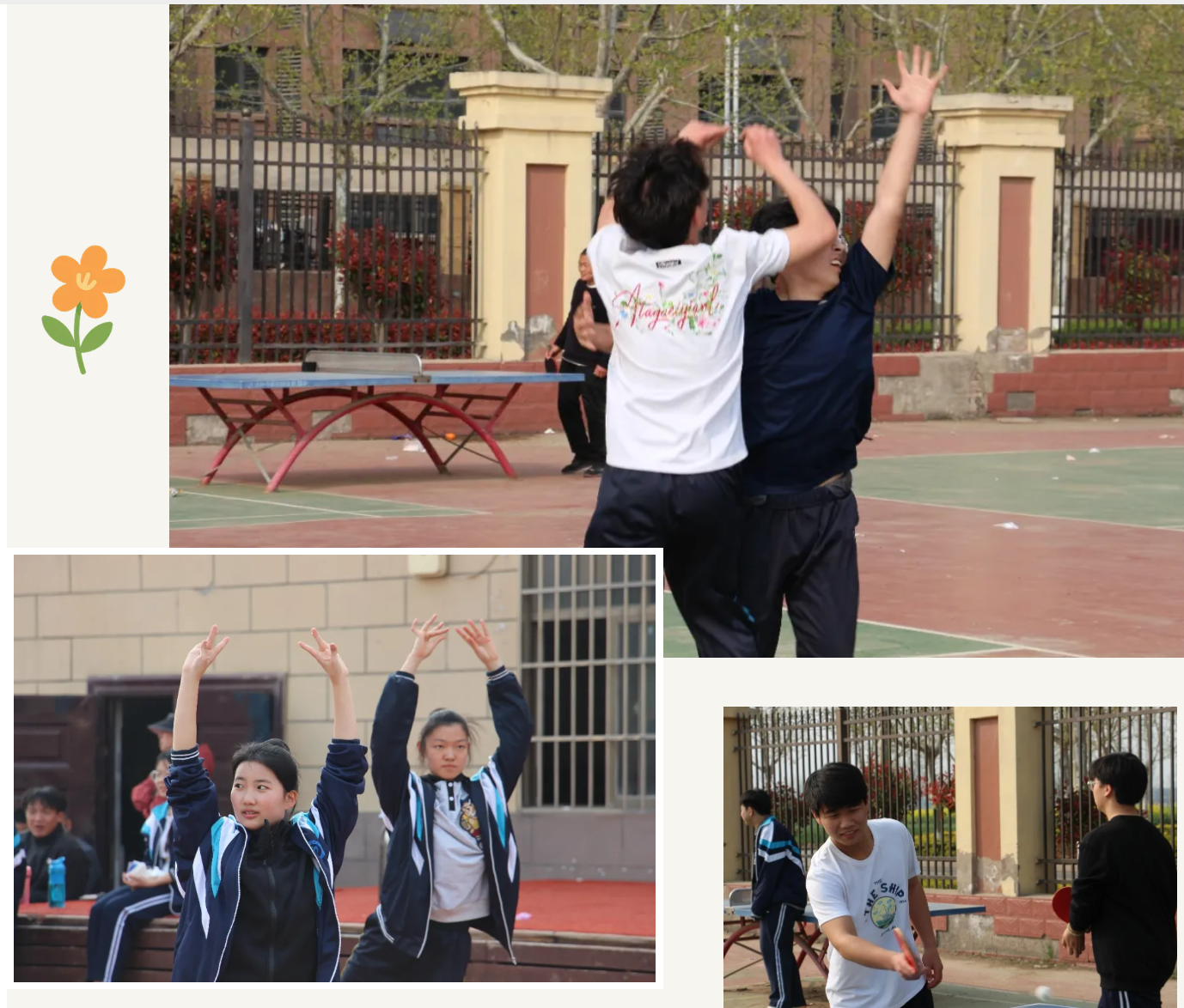 操场藏着少年的热血与活力。课间与体育课上,学子衣角随风扬起;篮球场上动作利落,汗水滴落;球台旁银球穿梭,挥拍间尽显灵动,每一份身影与欢笑,都是青春最鲜活的模样。