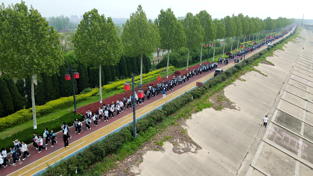 春风浩荡,万物并秀。为深入贯彻立德树人根本任务,持续推进“五育融合”育人实践,4月12日,我校高一年级近四千名师生整装出发,在党委书记、校长苗玉法等校领导及交警、医护人员的悉心护航下,踏上浮龙湖远足征程,以脚步丈量青春,用汗水磨砺意志,在湖光春色中完成了一场别开生面的“行走的思政课”。