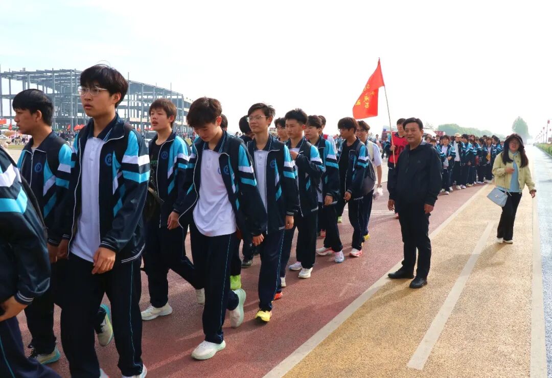 紧接着,党委书记、校长苗玉法向高一年级授旗,并宣布:“远足活动,现在出征!”随着一声令下,出征的热情瞬间点燃,同学们迅速而有序地列队登车,一辆辆大巴满载着欢声笑语与昂扬斗志,驶向环湖徒步起点,一场体能与意志的双重考验正式开启。